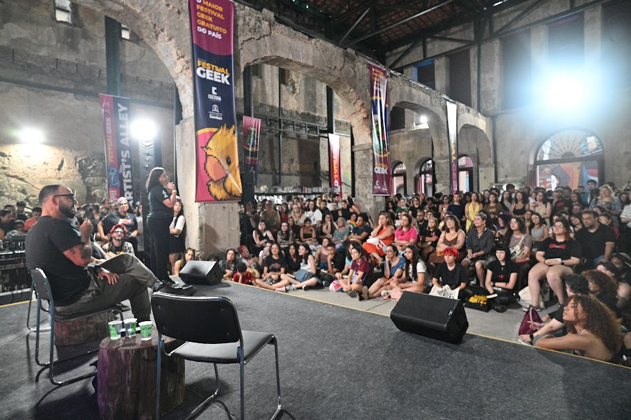 A cultura geek, ampla como o público, não é só de filmes, games, séries, músicas e animações. Grande parte está presente nos livros. Um dos maiores nomes contemporâneos da literatura de suspense brasileira, o carioca Raphael Montes, que já venceu o Prêmio Jabuti e roteirizou séries e novelas para a Rede Globo, Netflix e HBO, marcou presença na Casa da Frontaria Azulejada.