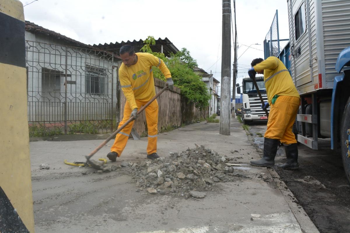 Equipes de zeladoria da Secretaria das Prefeituras Regionais (Sepref) seguem mobilizadas, nesta terça-feira (20), para reparos e limpeza após as fortes chuvas que atingiram Santos segunda-feira (19).